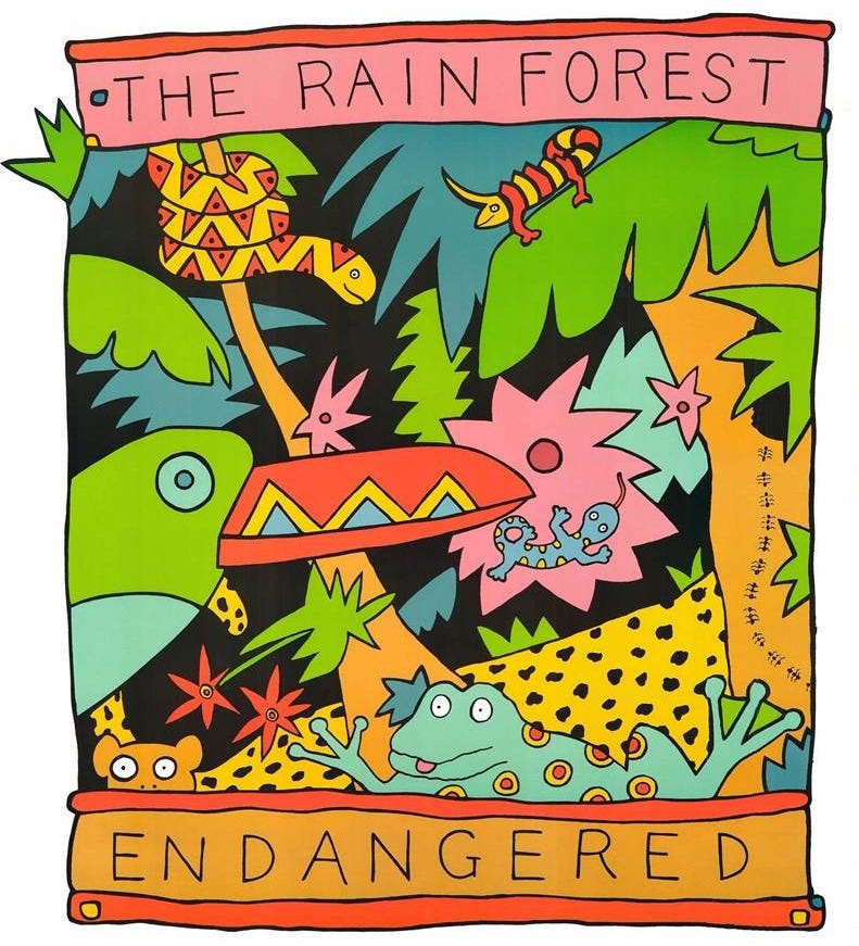 As a kid, I was heartbroken over the destruction of the Amazon rainforest, and I used to stare despondently at the deforestation maps in my Greenpeace or WWF magazines (“Twenty football fields per minute!”). I loved drawing the rainforest, but lacking any real artistic chops, I often used an artwork called “Rainforest, Endangered” as my model—a lush tapestry of brightly colored animals, each having its proper place in a harmonious ecosystem. And then, of course, came the evil humans with their chainsaws, wreaking havoc on this beautiful world!